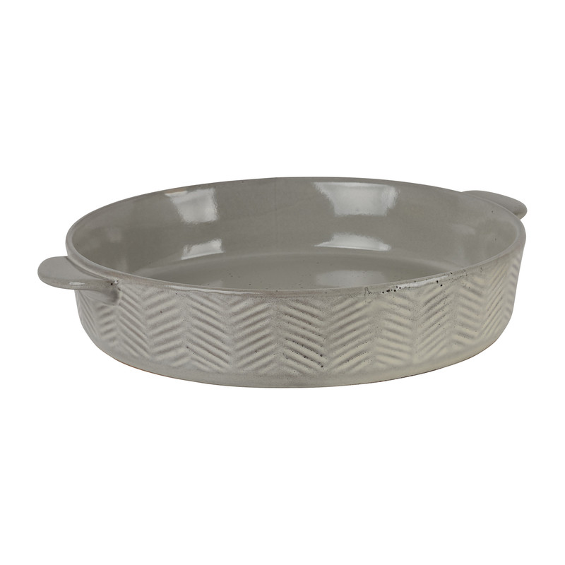 Ovenschaal Stockholm is verrassend in eenvoud. De lichtgrijze schaal is mooi vormgegeven en ideaal voor het bereiden van een heerlijke ovenschotel. De ronde ovenschaal is gemaakt van aardewerk en de afmeting is 31.5x26.5x5.5 cm. Geschikt voor in de magnetron en vaatwasser bestendig.