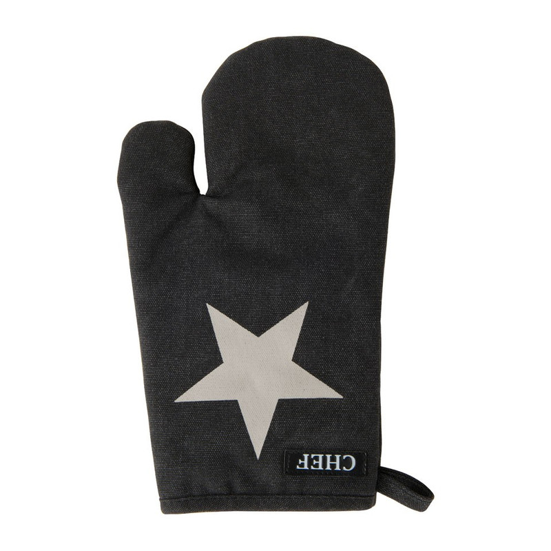 Bescherm je handen wanneer je een hete ovenschaal uit de oven haalt met deze hippe ovenwant. De want heeft een donkergrijze kleur met een lichtgrijze ster erop en het woordje 'Chef'. De afmeting is 30x18 cm en deze is gemaakt van 60% katoen en 40% polyester.