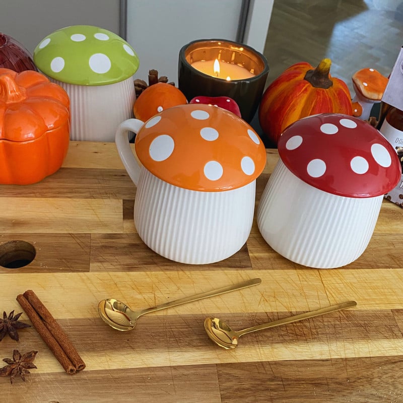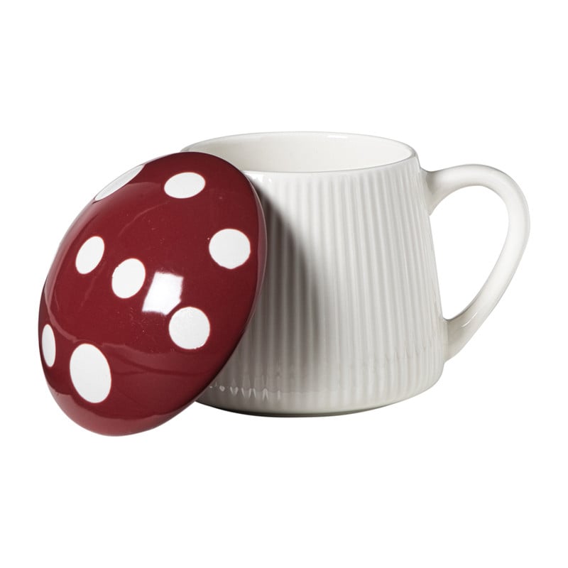Met deze paddenstoel mok ben jij helemaal klaar voor de herfst. Deze rode mok met een inhoud van 350 ml is perfect voor je pumpkin spice latte, koffie, thee of warme chocolademelk. Het vrolijke paddenstoelendeksel en de levendige rode kleur brengen een speelse en herfstachtige sfeer aan je tafel, ideaal voor een gezellige ochtend of een ontspannende avond. De mok heeft een inhoud van 350 ml, een hoogte van 11 cm en een diameter van 14 cm.