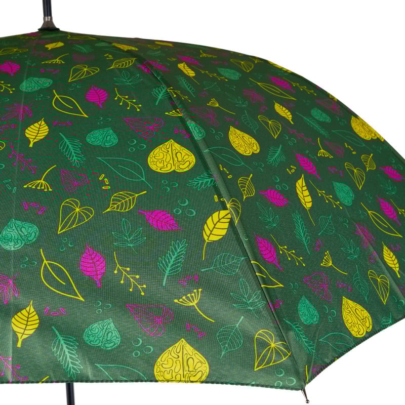 Nederland blijft Nederland, dus regenen zal het! Bereid je daar goed op voor met deze trendy paraplu. De paraplu is groen en versierd met bladeren in multikleur. Met deze paraplu steel jij sowieso de show!