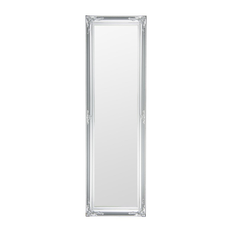 Deze zilveren passpiegel is met zijn subtiele sierlijke lijst een eyecatcher aan je wand. Super fijn om je outfit te kunnen checken in deze langwerpige passpiegel. De spiegel is 129x39 cm en kan zowel horizontaal als verticaal opgehangen worden. De neutrale zilveren lijst heeft een strak design en past daardoor in vrijwel elk interieur. De spiegel is gemaakt van polystyreen.