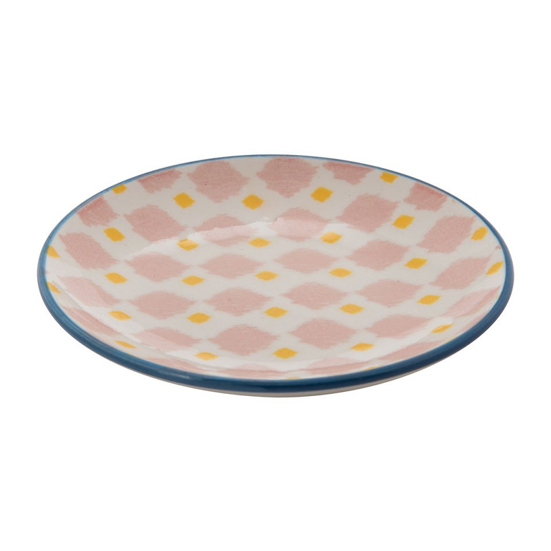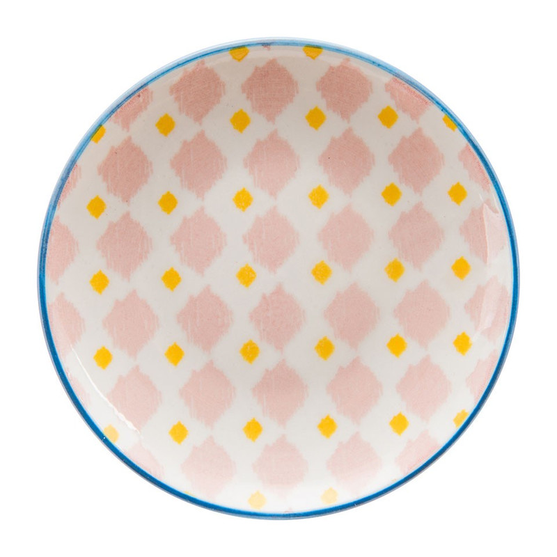 Vrolijk petit four bordje Nova met een zachtroze en geel design. Het petit four bordje Nova is een vrolijk en kleurrijk bordje. Het bordje siert je high tea of etentje met een leuk design. Ze hebben een diameter van 10 centimeter. Een ideaal formaat voor een kleine petit fours of lekkere bonbons! De bordjes zijn ook makkelijk voor kleine hartige hapjes. Ze kunnen in de magnetron en vaatwasser. Geniet van iets lekkers met deze petit four bordjes. Perfect voor een gezellig etentje met je vriendinnen. Combineer verschillende designs voor een kleurig geheel.