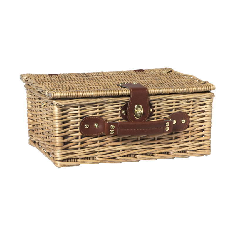 De picknickmand is 36 cm lang, 26 cm breed en 16 cm hoog.