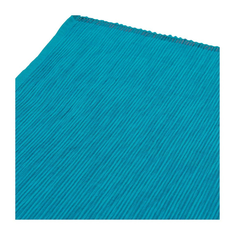 Bescherm je tafel op een chique manier tegen krassen en vlekken met deze petrol placemat met subtiele zilveren rand. De geribde stof geeft de placemats een stoere uitstraling. De placemats hebben een afmeting van 33x48 cm en zijn gemaakt van katoen en lurex. De onderleggers kunnen gestreken en gewassen worden op 30 graden, maar houd er rekening mee dat ze kunnen krimpen in de was.