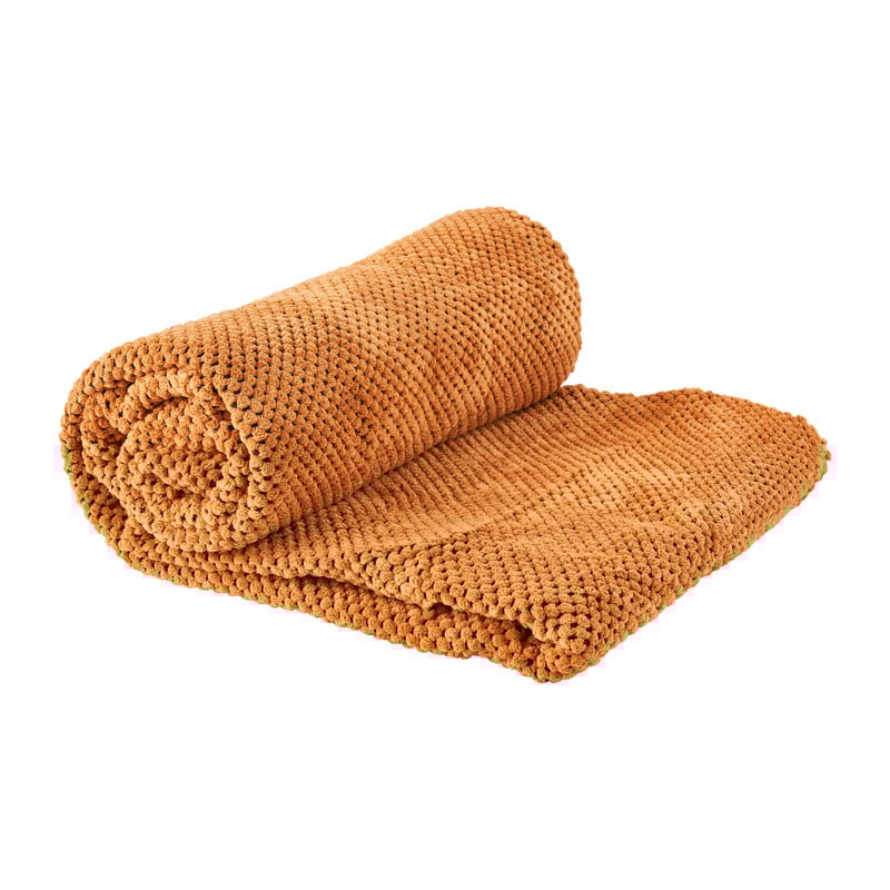 Er is niets lekkerder dan op een koude avond op de bank te kruipen met een warme plaid. Deze plaid met zacht blokjespatroon is ideaal en helemaal van deze tijd. De okergele kleur past bij ieder interieur. De plaid is 130x160 cm. Combineer de plaid met onze kussentjes uit dezelfde serie.