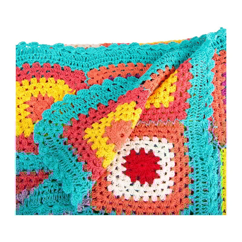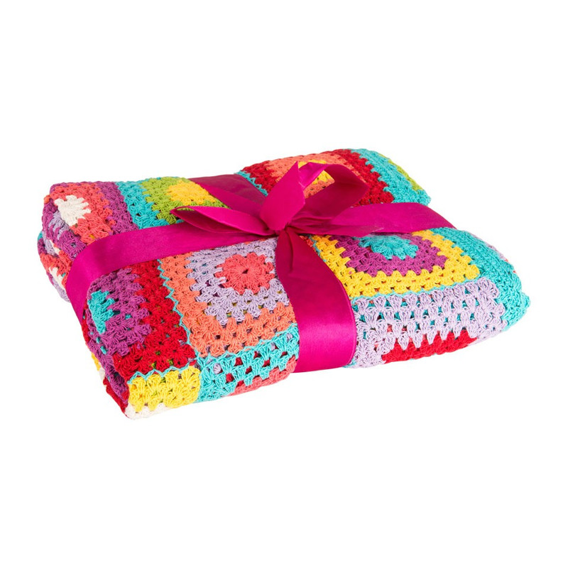 Dit plaid multi kleuren gehaakt heeft prachtige kleuren, een plaid kopen doe je bij Xenos. Je legt de plaid op een bank of bed om het mooi af te dekken. Je kunt deze mooie gehaakte plaid ook gebruiken als zomerdekentje of zelfs als tafelafdekking. De plaid is volledig gehaakt en helemaal van katoen gemaakt. De kleurige plaid heeft een afmeting van 125 x 150 cm.