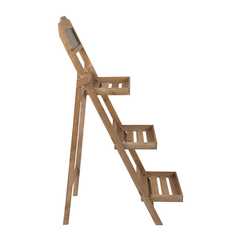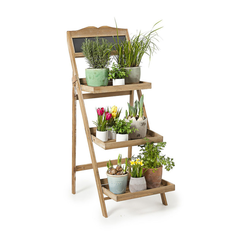 Het plantenrek is gemaakt van hout en heeft aan de bovenkant een klein krijtbord. De trap is 103 cm hoog, 44 cm breed en 62 cm lang. Het rekje is eenvoudig in te klappen, waardoor je hem makkelijk kunt opbergen.