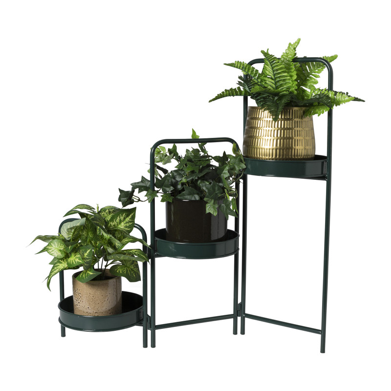 Planten verdienen een mooi plekje in huis, bijvoorbeeld op deze plantenstandaard. De planten staan hierdoor net iets hoger en dat geeft een natuurlijk en stijlvol effect. Uiteraard kan je ook andere decoratie op deze plantenstandaard zetten. Deze groene standaard is gemaakt van metaal en heeft een afmeting van 67x22x64 cm.