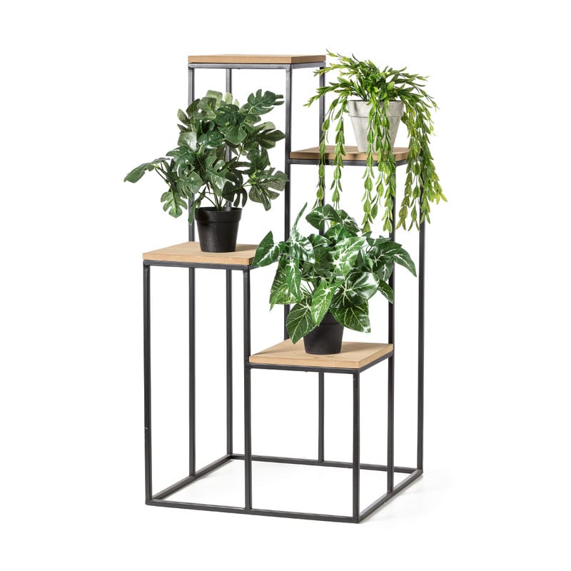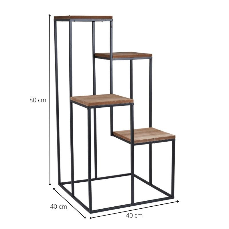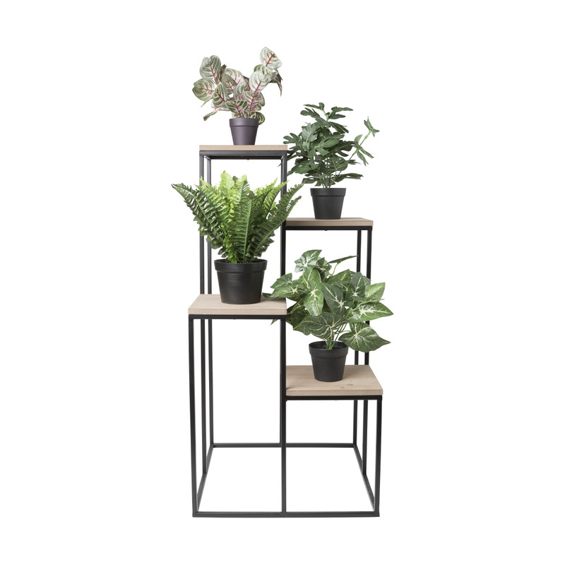 Plantentafel Isa biedt de ruimte om planten speels neer te zetten. Door het hoogte verschil creëer jij je eigen weelderige thuis jungle. De plantenstandaard heeft in totaal 4 etages. Natuurlijk kan je de metalen standaard met houten MDF planken ook gebruiken om andere eyecatchers onder de aandacht te brengen. Bijvoorbeeld die bijzondere vaas of dat authentieke kunstwerk. Standaard Isa is 40x40 cm groot en 80 cm hoog.