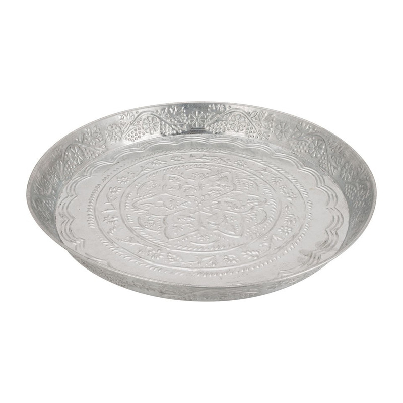 Een mooi plateau is gaaf om het huis mee te versieren. Dit mooie plateau van echt zink is te gebruiken als dienblad of om bijvoorbeeld mooie kaarsen op te zetten. Je kan er ook een prachtig herfststuk op maken met takken uit het bos. Het plateau heeft een fijne opstaande rand en een prachtig bloemmotief in het zink. Dit toppertje heeft een diameter van 40 centimeter en is lekker stevig.
