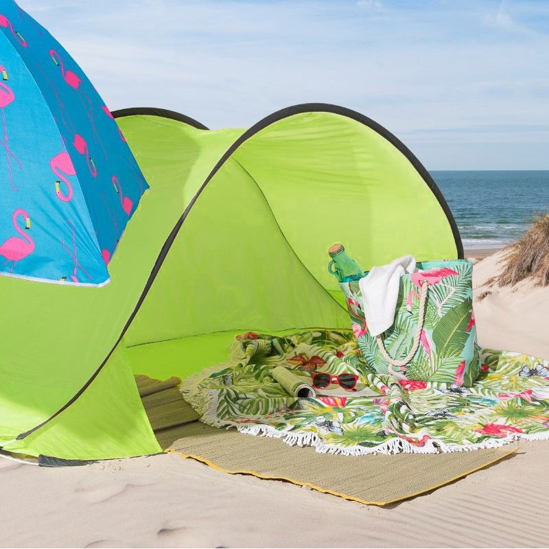 Dit pop-up strandtentje is ideaal wanneer je met kleine kinderen naar het strand gaat. Je creëert zo een mooi plekje in de schaduw voor de kids, voor je spullen en natuurlijk ook voor jezelf. De tent is 220 cm breed zodat er voldoende plek is voor meerdere personen. Hulp nodig bij het opvouwen van de tent? Op YouTube zijn diverse filmpjes te vinden waarin dit wordt uitgelegd.