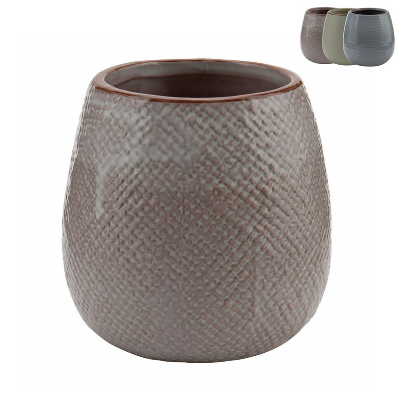 Pot keramiek reliëf - 10x10 cm - groen/taupe/grijs
