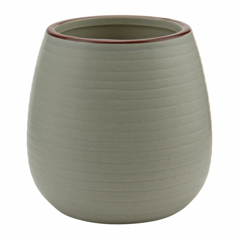 Met een combinatie van kleine potjes kun je een speels een stijlvol geheel creëren. Dit potje past in ieder interieur. Vul deze bijvoorbeeld met een klein plantje of een decoratief boeketje. Het potje is 10x10 cm. De kleur van het potje is groen, taupe of grijs en in alle drie de kleuren zit een subtiele print. Het vaasje is gemaakt van keramiek.