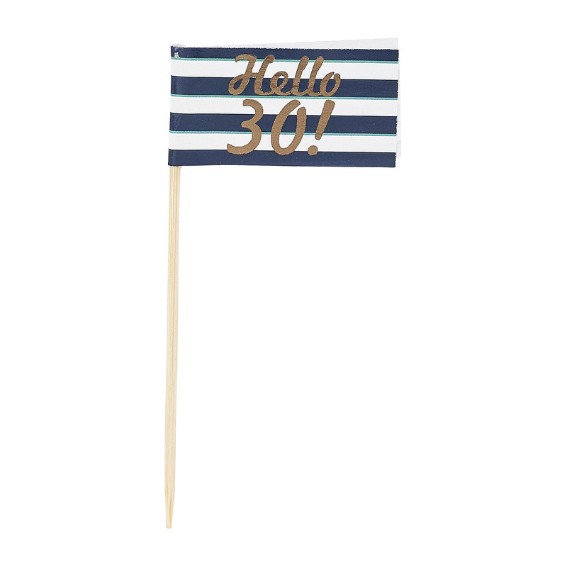 Hello 30! Deze mijlpijl vier je uiteraard met een feestje. Haal dus voor je verjaardag deze bamboe prikkers met vlaggetjes in huis. Handig voor het serveren van diverse hapjes zoals bitterballen, mini wraps, blokjes kaas en/of olijven. In de verpakking zitten 16 prikkers.