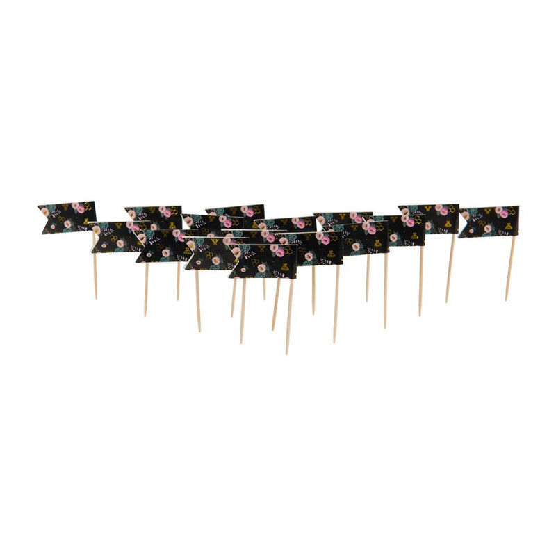 Deze prachtige prikkers met bloemenmotief staan mooi in een kaasje, olijven en in andere hapjes en zijn perfect bij een etentje of traktatie. Deze mooie serie van wegwerp artikelen heeft een zwarte achtergrond, een prachtige tekening van bloemen en bijen. Deze prikkers mogen worden gezien op een feestje. De prikkers zitten in een set van 16 stuks. Met de bijpassende bakjes, bekers, servetten, borden creëer je een stijlvolle feestelijke sfeer. Bekijk ze allemaal!
