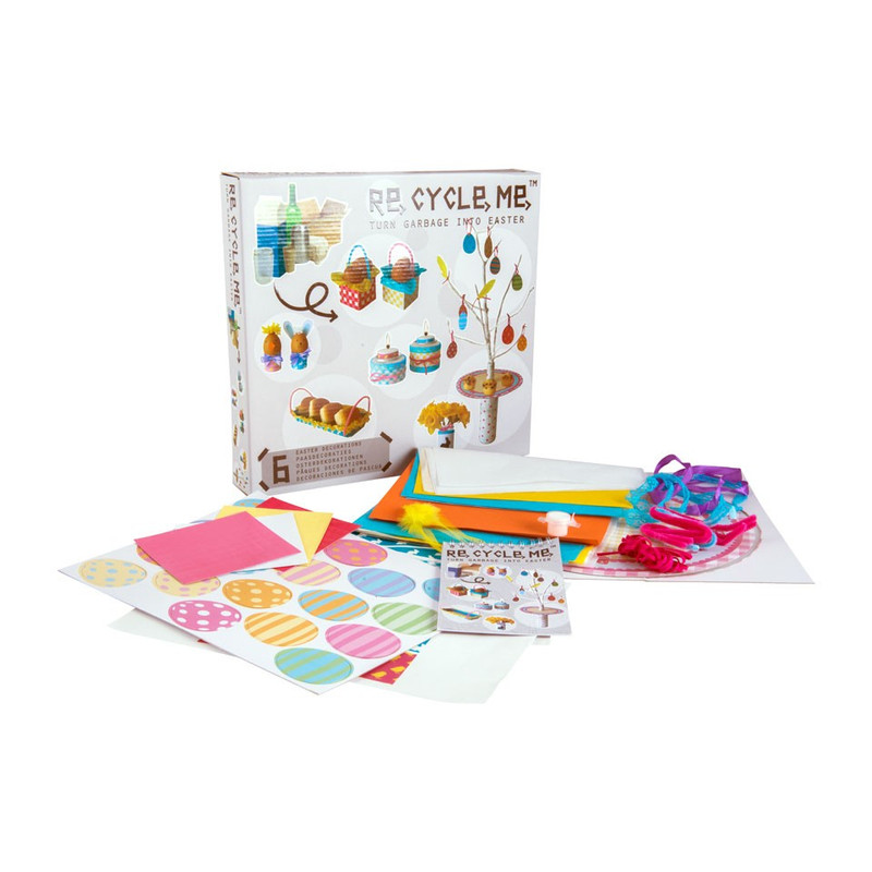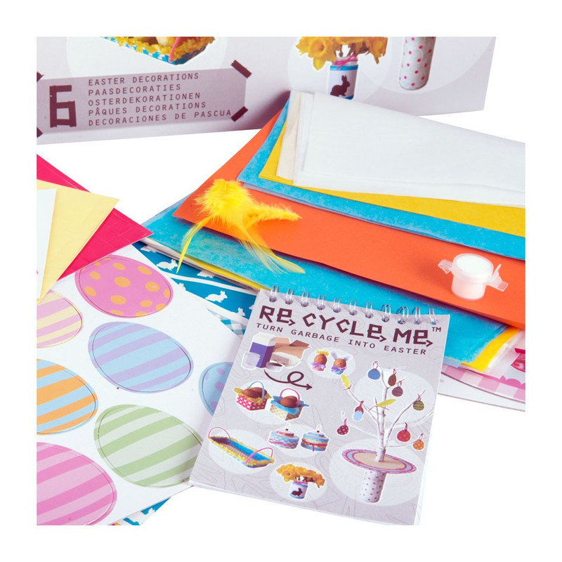 Decoreer je huis met je eigen gemaakte paasdecoratie van dit Re-Cycle-Me pakket en simpel afval. Wij houden van recyclen! In deze doos vind je alles wat je nodig hebt om simpel leeg afvalmateriaal om te toveren in 6 verschillende paasdecoraties, zoals een eierdopje, kaarshouders of een vaasje. Het is leuk om te doen en stimuleert je creativiteit.