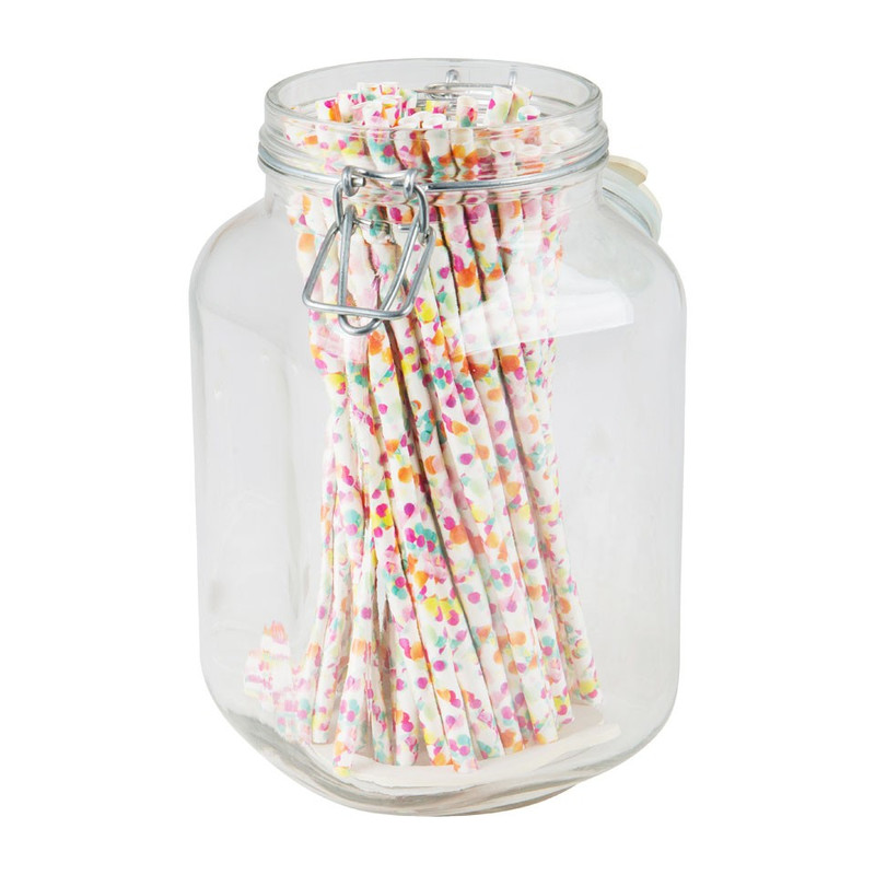 Deze vrolijke rietjes geven een feestelijk tintje aan de party. Ze zien er heel gaaf uit en hebben een print van confetti. Ze zijn perfect voor een mooie cocktail, de drankjes op je verjaardagsparty of gewoon in een blikje. Verpakt per 50 rietjes. Enjoy!
