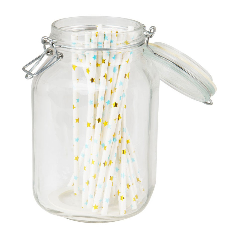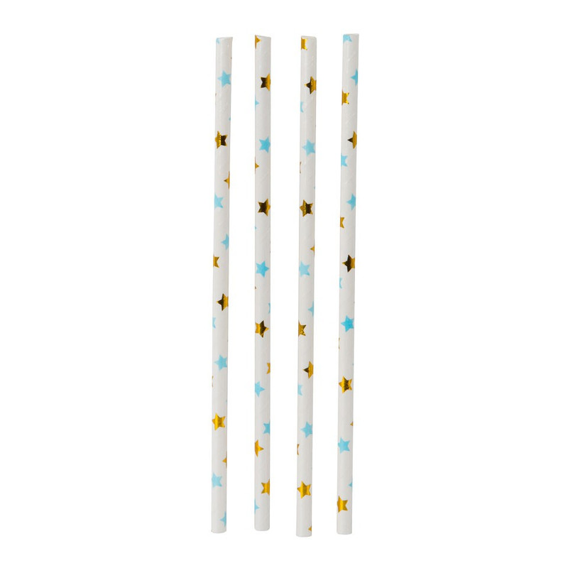 Met deze rietjes maak je een drankje net dat beetje specialer. Ze zitten in een set van 24 stuks. De rietjes zijn wit met een opdruk van blauwe en goudkleurige sterretjes. Ze zijn gemaakt van papier waardoor ze ook beter zijn voor het milieu.