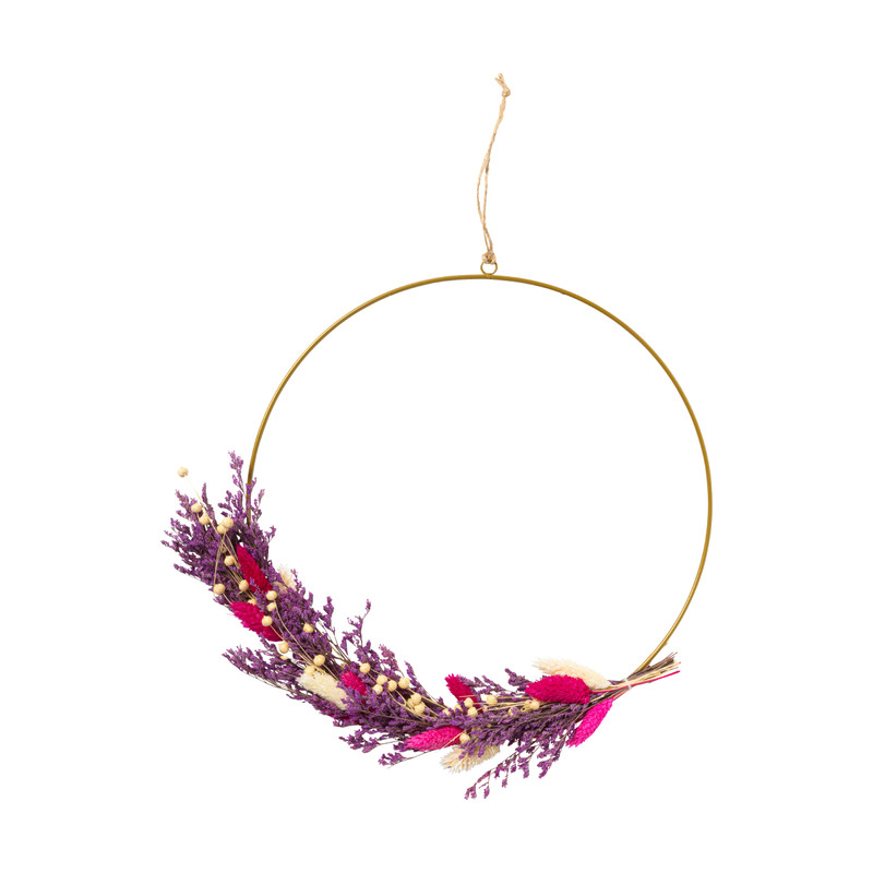 Ring met droogbloemen - roze/paars - 30 cm