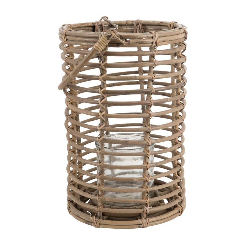 Geniet van romantisch en stijlvol kaarslicht uit deze rotan lantaarn. Het hengsel zorgt ervoor dat je de lantaarn gemakkelijk kunt verplaatsen en in de glazen houder kun je veilig een kaarsje branden. Zo creëer je in een handomdraai een romantische sfeer in huis of in de tuin. De afmeting van de lantaarn is 24x36 cm en de afmeting van de glazen kaarshouder is 12x12 cm.