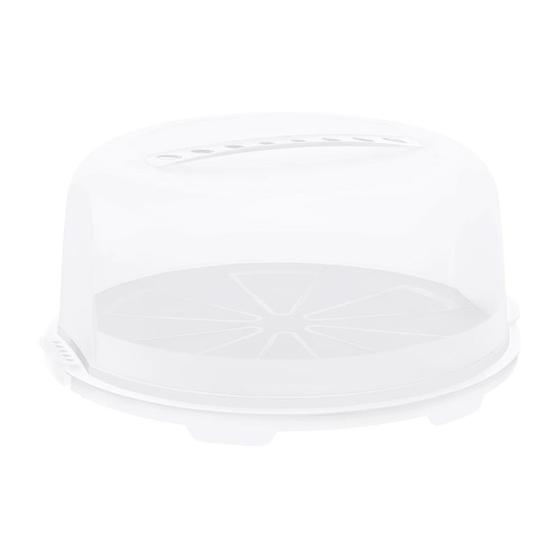 Bewaar een zelfgebakken taart gemakkelijk met deze taartdoos uit de fresh-serie van het hoogwaardige merk Rotho. Het is een handige, ronde box waarin in jouw baksel langer vers blijft. De taartbox heeft een diameter van 33 cm en is 14,5 cm hoog. Met deze afmeting is de doos geschikt voor één ronde taart. De box is voorzien van clipsluitingen aan de randen en bovenop is hij voorzien van een stevige handgreep. Dankzij deze handgreep is jouw baksel dus gemakkelijk te verplaatsen. Handig als je wilt trakteren of gaat picknicken. Doordat de bovenkant volledig afneembaar is kun je de onderkant gebruiken als plateau om de taart op te serveren.