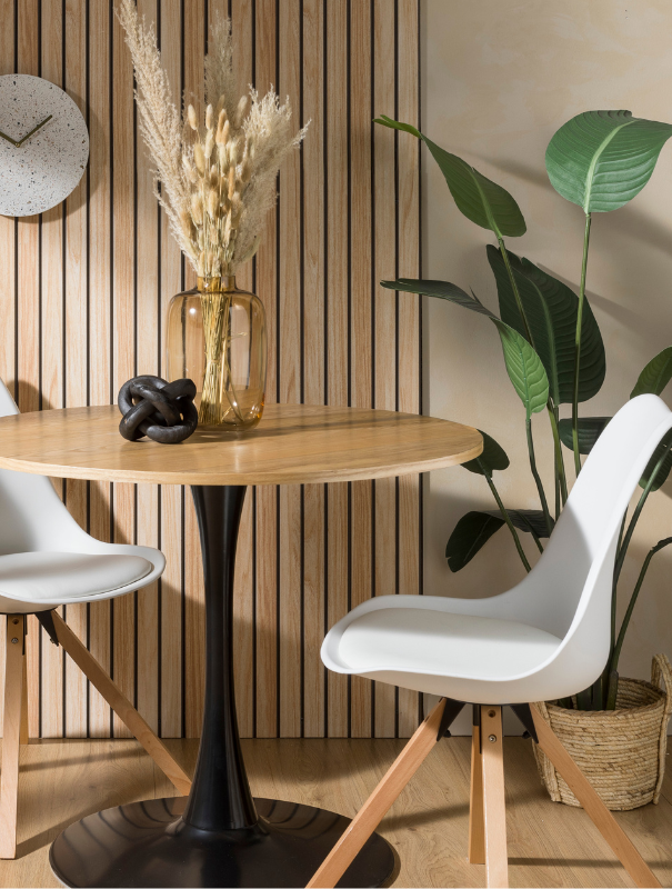 Er zijn eindeloos veel eetkamer ideeën waarmee je jouw eethoek kunt omtoveren tot een stijlvolle én functionele plek. Denk aan een robuuste houten eettafel gecombineerd met verschillende stoelen voor een speels effect. Of kies voor een ronde tafel in een kleinere ruimte om het gezellig en open te houden. Maak het af met een opvallende hanglamp boven de tafel en sfeervolle kaarsen of lantaarns voor dat extra beetje warmte. Planten, placemats en een mooi servies zorgen voor een huiselijke en uitnodigende sfeer. Ook wanddecoratie zoals lijsten, spiegels of wandrekken geven karakter aan je eetkamer. Houd je van rust? Ga dan voor neutrale tinten en natuurlijke texturen. Meer kleur? Mix en match met prints, stoffen en accessoires voor een levendige uitstraling.