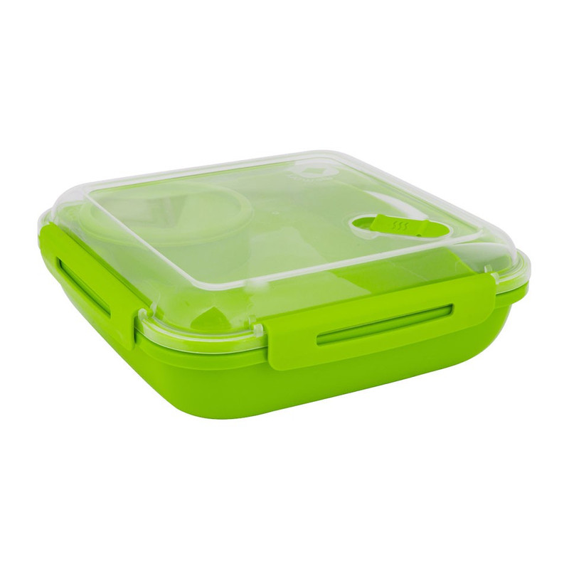 Deze leuke saladebox is perfect voor het meenemen van je lunch! De saladedoos biedt ruimte aan een flinke salade. Hij heeft een extra compartiment om de dressing apart te bewaren en ruimte voor extra's zoals noten, gerookte spekjes of zelfs een boterham. Neem nu een lekkere salade mee van huis en geniet van het gezonde leven. De doos wordt geleverd inclusief bestek, hoe handig is dat!