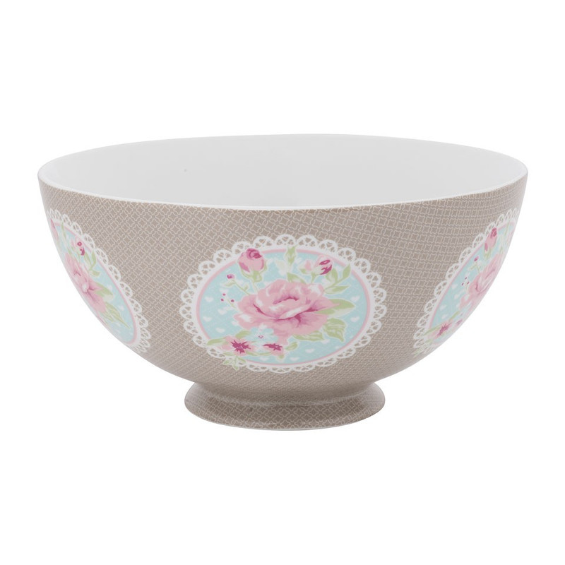 Deze schaal is gemaakt van porselein en heeft een mooie romantische print. De ondergrond is beige met daarop blauwe cirkels met roze bloemen. Erg leuk om te gebruiken als fruitschaal bijvoorbeeld. Ook voor hapjes tijdens een feestje is deze schaal prima geschikt.