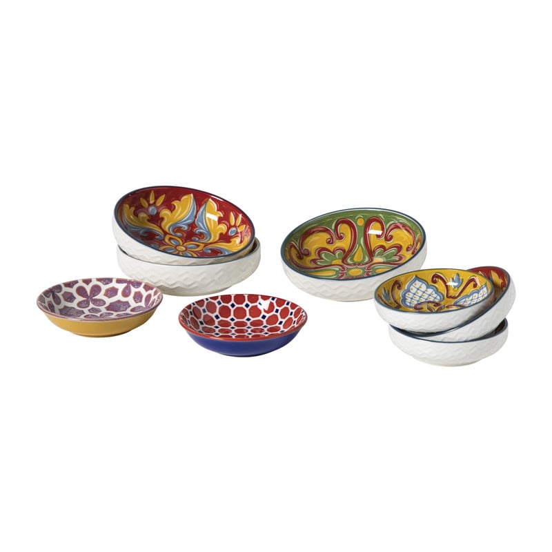 Cocina color is een feestje op tafel. Deze kleurrijke serie schaaltjes is geïnspireerd op de zon, de zee en het leven buiten – precies wat je nodig hebt voor een tapasavond, picknick of borrel met vrienden. Elk schaaltje heeft een uniek patroon en draagt een charmante naam: Pablo, Carlos of Diaz. Of je nu houdt van warm rood, zonnig geel of levendig groen: met Cocina Color mix & match je jouw favoriete kleurencombi’s. Perfect voor dips, tapas, olijven, kruidenboter of gewoon iets lekkers voor jezelf!