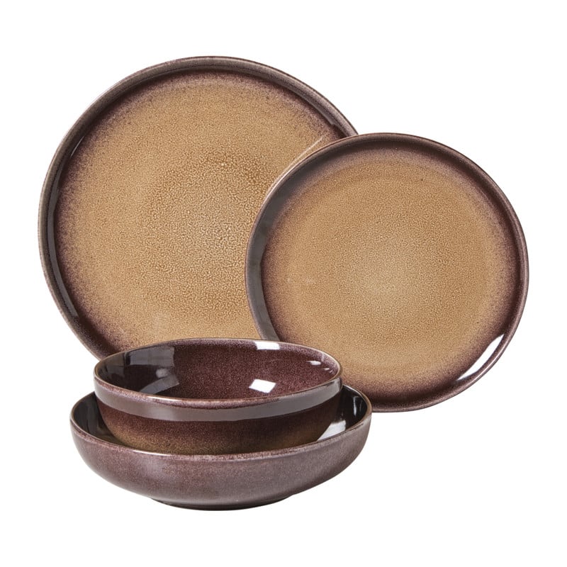 Ontdek de charme van servieslijn Olivia: een warme, sfeervolle collectie die direct een gezellige sfeer op tafel brengt. De diepe bordeauxrode tint, gecombineerd met het zachte beige en een unieke, reactieve glazuurlaag, zorgt voor een mooie uitstraling op tafel. Elke mok, schaal of bord is uniek door het glazuur.