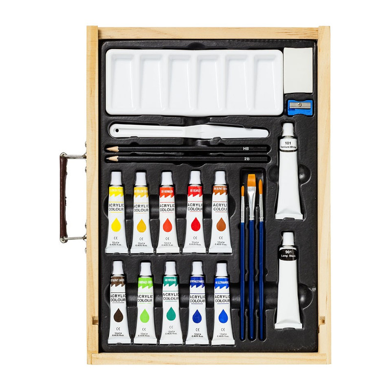 Alles wat een schilder nodig heeft zit in deze 22-delige schilderskist. Daarnaast kun je al jouw schilderspulletjes weer makkelijk en netjes opbergen in de kist.