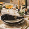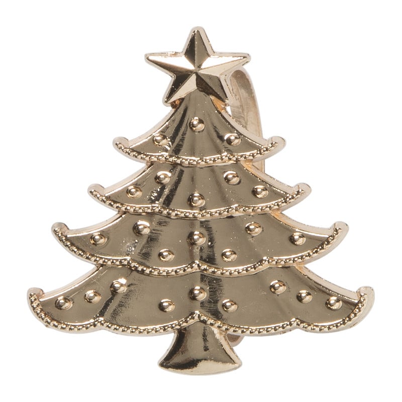 Breng een speels en feestelijk accent naar je kersttafel met deze servetring in de vorm van een gouden kerstboom! Met een doorsnede van 5 cm is deze servetring perfect om je servetten stijlvol te presenteren tijdens het kerstdiner. De gouden en zwarte kerstbomen zorgen voor een gezellige winterse sfeer en maakt je feesttafel compleet. De servetringen komen in een set van 4. De servetring is niet alleen praktisch, maar ook een leuke toevoeging die zowel kinderen als volwassenen zal laten glimlachen. Perfect voor een feestelijk diner, een brunch of een gezellige high tea tijdens de feestdagen!