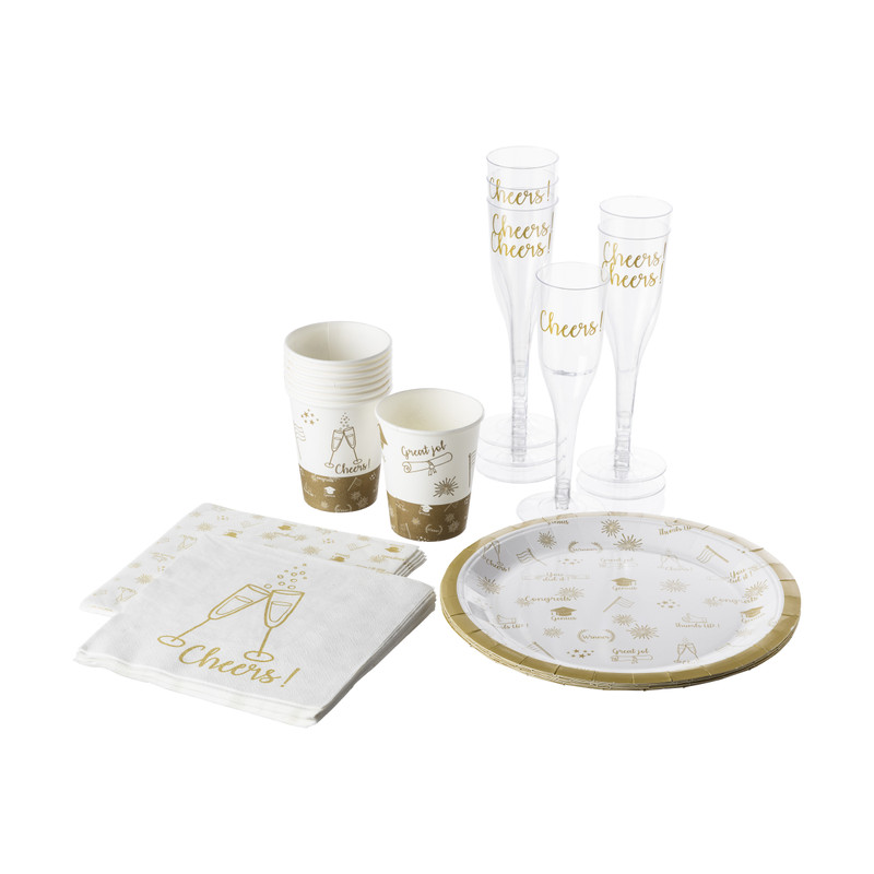 Ben jij geslaagd? Vier het dan groots met een feestje. Deze servetten passen perfect in het thema van jouw feestje. Op een zijde van het servet staan twee proostende glazen en de andere zijde heeft heeft een leuke print met vlaggetjes, champagneglazen en een academische petten past helemaal bij jouw feestje.