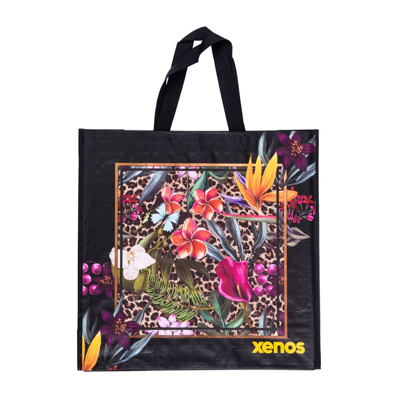 Stop al je boodschappen in deze leuke shopper van Xenos. De vrolijke print maakt boodschappen doen leuk! De tas heeft een is 46x45 cm en heeft een diepte van 15,5 cm.