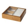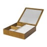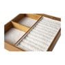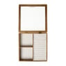 De sieradendoos heeft een hoogte van 5,5 cm, een breedte van 23 cm en een diepte van 23 cm. Deze sieradendoos heeft 3 vakken.