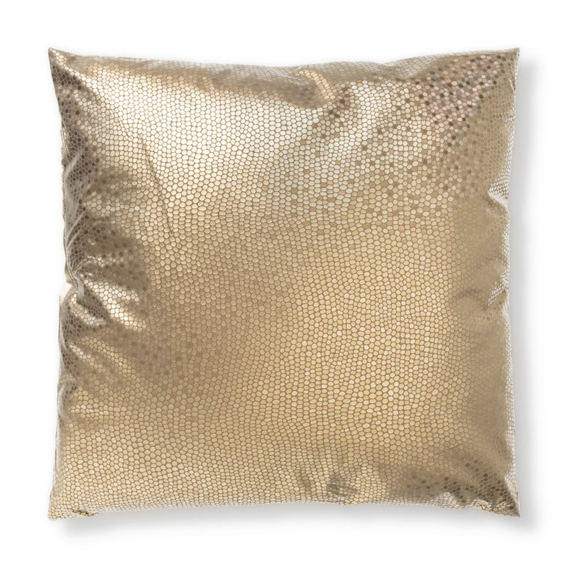 Voeg een goud accent toe aan je zithoek met dit schubben kussen. Het gouden sierkussen heeft een sprankelend ontwerp. Plaats 'm op je favoriete stoel of bank en geniet van de subtiele glans. De afmeting is 45x45 cm.