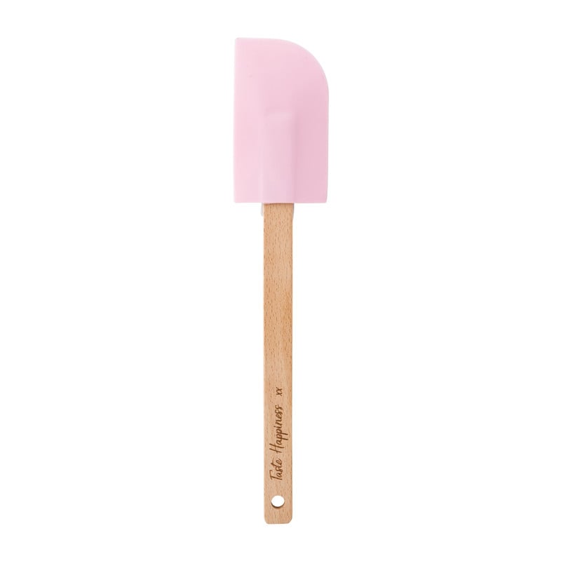 "Met deze roze pannenlikker haal je zelfs dat laatste restje uit de pan. De pannenlikker is gemaakt silliconen en de handgreep is van beukenhout. De pannenlikker is 27 cm lang.