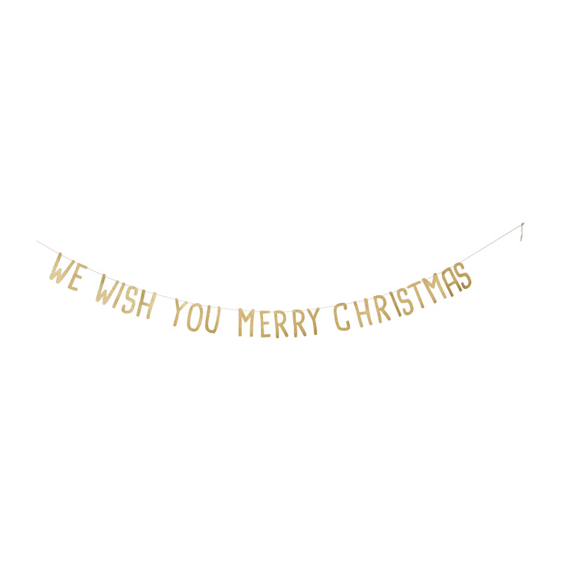 Het is feest en dat mag gezien worden. Creëer een gezellige sfeer met deze goudkleurige slingers met de tekst: We wish you Merry Christmas.