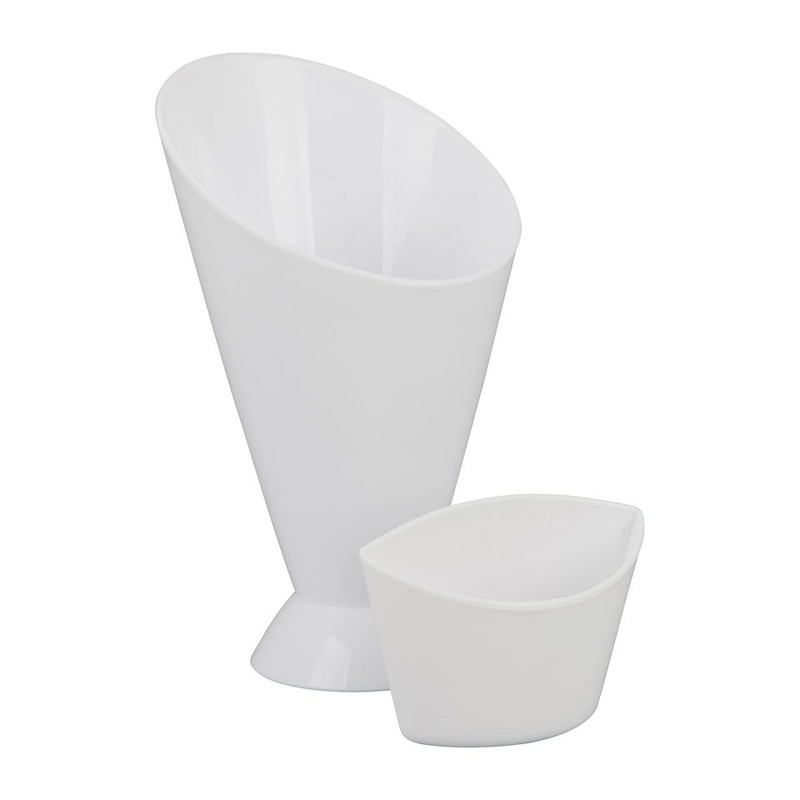 In deze puntzak met sausbakje zet je jouw snacks leuk op tafel. Van friet met frietsaus tot wortels met hummus, in deze snackbeker ziet het er super leuk uit. We mogen best zeggen dat deze beker de slimste manier is om je snack met sausje op tafel te zetten. Handig om het bakje erin te laten staan, maar je kunt hem er ook naast zetten. De beker is wit van kleur en 10x16 cm.
