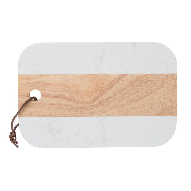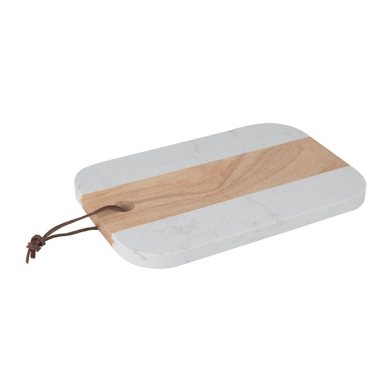 Serveer je hapjes op deze mooie snijplank van hout en steen met een prachtige marmerlook. Deze snijplank kun je natuurlijk gebruiken voor het snijden van je ingrediënten tijdens het koken. Maar op deze snijplank met marmerlook kun je ook perfect je hapjes serveren aan je visite. Sfeervol en mooi! De plank is voorzien van een gaatje met daarin een touwtje waaraan je snijplank ook hangend kan opbergen. Deze snijplank is ook in een ander formaat verkrijgbaar, bekijk ook onze andere snijplanken.