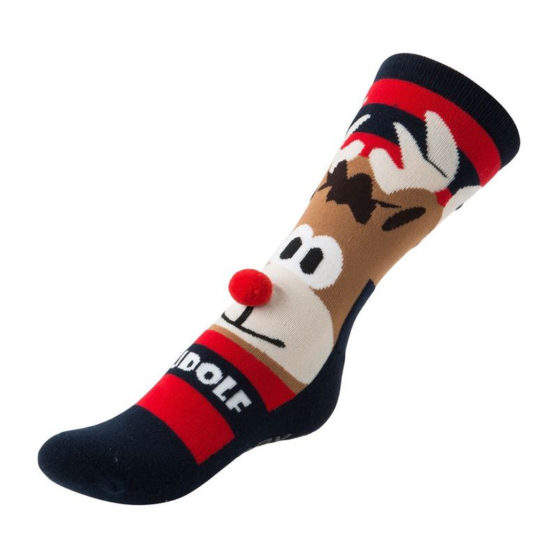 De sokken Rudolph hebben een grappige kerstuitstraling doordat rendier Rudolph er met een rood neusje op staat. De kerstsokken hebben een antislip coating op de onderkant waardoor ze heel fijn lopen en je niet over de vloer glijdt. Bovendien zijn ze lekker warm en zitten heerlijk!
