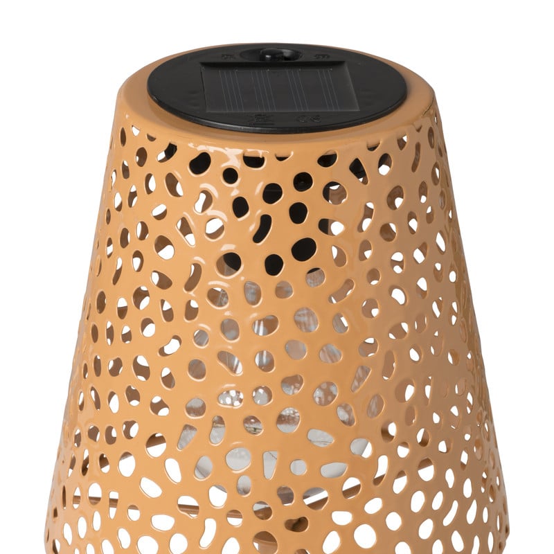 Wil je je tuin op een sfeervolle manier verlichten? Dan is deze tuinlampion precies wat je nodig hebt! Deze lampion werkt op zonlicht, wat betekent dat je geen gedoe hebt met kabels of batterijen. De lampion is gemaakt van polypropyleen en metaal. Deze lampion heeft een terra kleur met een patroontje op de lampenkap. De lampion werkt op 1x AAA batterij, deze is inclusief. De solar tuinlamp op voet geeft een warmwit licht.