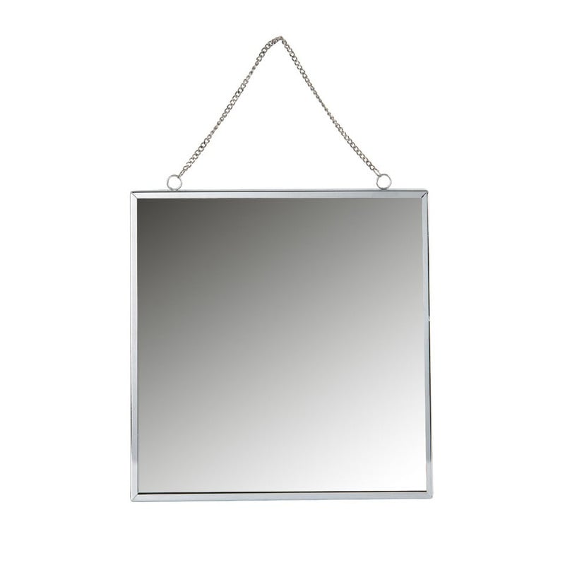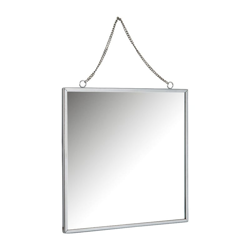 Deze vierkante, zilverkleurige sierspiegel is een stijlvolle toevoeging aan een chique interieur. De spiegel is gemaakt van metaal en is eenvoudig op te hangen aan het subtiele kettinkje. De spiegel is vierkant, wat een stijlvolle look geeft. Leuk om te combineren met schilderijen en andere wanddecoratie om de spiegel goed tot zijn recht te laten komen. De afmeting van de spiegel is 30x30 cm.