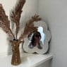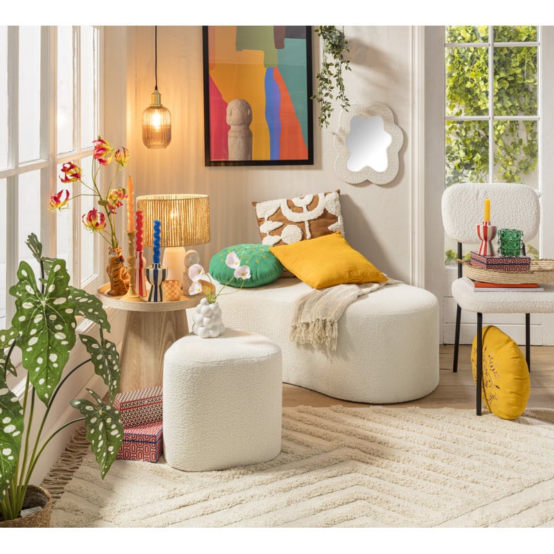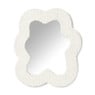 Deze trendy spiegel is onmisbaar in jouw interieur! Hang deze funky spiegel op in je woonkamer, slaapkamer of in de hal. De spiegel heeft een organische lijst van bouclé stof, een materiaalsoort dat helemaal on-trend is.
