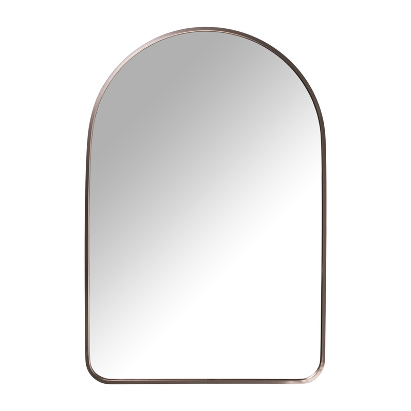 Spiegels in bijzondere vormen zijn helemaal on-trend. Deze spiegel heeft een ronde top. Hoe leuk is dat! Verkrijgbaar in kleuren goud, zilver en koper.