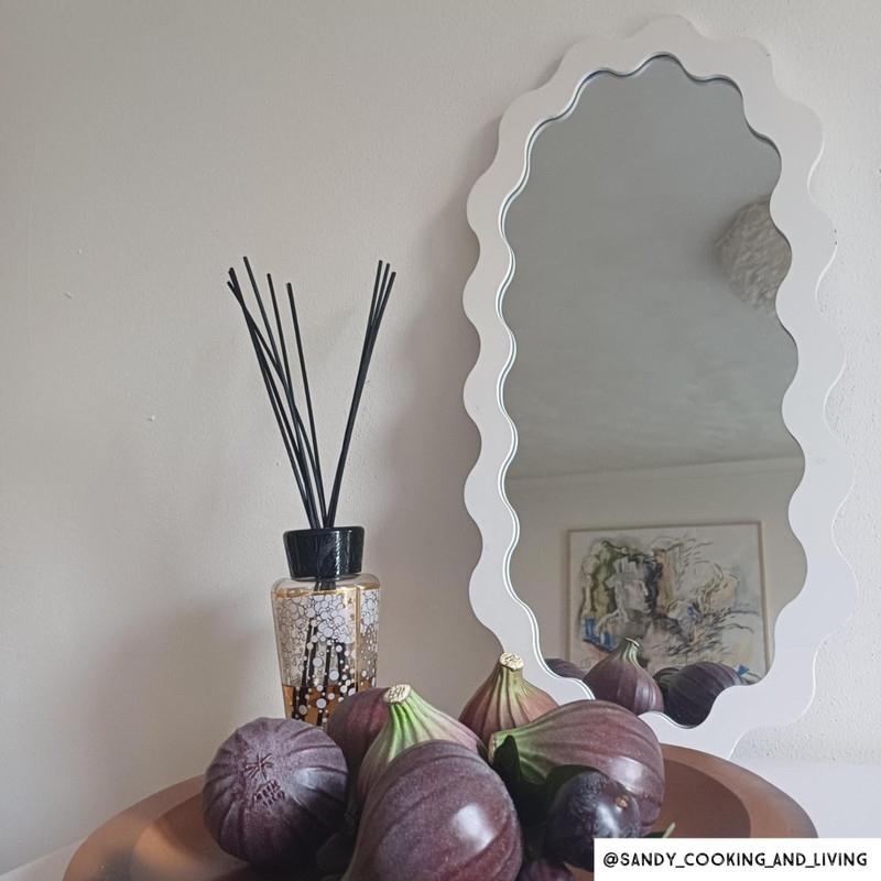 Deze trendy spiegel met golfrand is onmisbaar in jouw interieur! Hang deze spiegel op in je woonkamer, slaapkamer of in de hal. De spiegel heeft een langwerpige vorm en de lijst is wit van kleur met een golfrand.