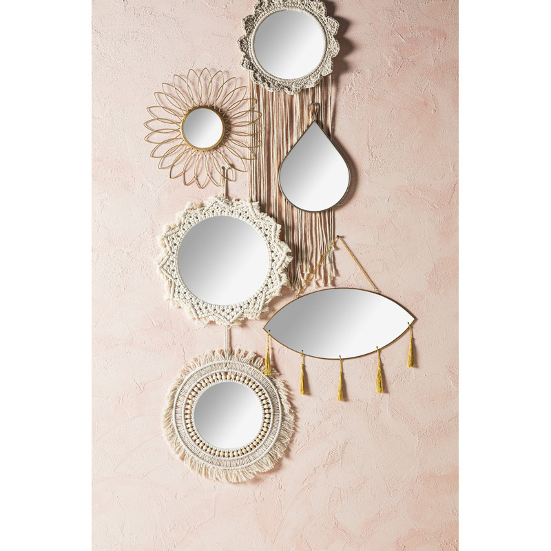 Deze spiegel met macrame rand laat jouw helemaal het zomergevoel voelen. Veel zomerse woonstijlen passen bij de macrame stijl. Vind je dit een leuke stijl? Kijk gauw verder op Xenos.nl voor alle macrame artikelen. Deze spiegel is gemaakt van katoen en heeft een diameter van 24 cm.