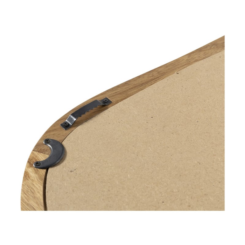 Geef je interieur een natuurlijke uitstraling met deze organische spiegel! De spiegel heeft een elegante, organische vorm en is afgewerkt in een lijst van acaciahout. Met een afmeting van 55x48 cm is het een perfecte eyecatcher voor in de hal, slaapkamer of woonkamer. De warme houttint van de lijst brengt een rustieke sfeer in huis, terwijl de speelse vorm van de spiegel een modern tintje geeft. Je kan de spiegel zowel horizontaal als verticaal ophangen.