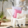 Monteer de zilveren haakjes aan de zwarte standaard naar buiten en beneden gericht. Trek vervolgens de lus van de hangmat over en door de tweetand naar de zilveren haak toe. Het beste werkt als je dit bij beide kanten tegelijkertijd doet. De hangmat hangt dan hoog, maar als je erin gaat liggen op precies de juiste hoogte.