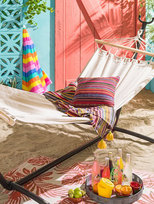 Dat je zult relaxen staat vast met deze stijlvolle standaard voor hangmatten. De standaard is geschikt voor iedere tuin. Ook kan je de hangmat binnen zetten, want de doppen aan de poten zorgen ervoor dat de vloer niet beschadigd raakt. De standaard wordt geleverd zonder hangmat.